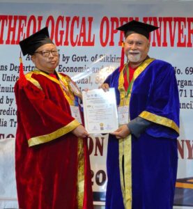गान्तोक: डिभाइन थियोलजिकल ओपन यूनिभर्सिटीले आइतबार नाम्चीमा आयोजित एक भव्य समारोहबीच समाजका चार विशिष्ट व्यक्तिहरुलाई मानद डक्टरेट उपाधिद्वारा सम्मानित गरेको छ। नाम्चीमा सञ्चालित उक्त यूनिभर्सिटीले भारतका