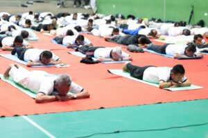 अगरतला: त्रिपुराको राजधानी अगरतलाको हापनिया मेला ग्राउण्डमा शनिवार ११औं अन्तर्राष्ट्रिय योग दिवस पूर्ण उत्साहको साथमा मनाइयो। यस राज्यस्तरीय समारोहमा राज्यका मुख्यमन्त्री माणिक साहा लगायत ठूलो संख्यामा