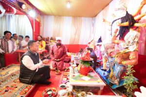 मंगन: मंगन जिल्लाको जिल्ला अस्पतालको उदघाटन गर्न मंगन पुगेका मुख्यमन्त्री प्रेमसिंह तामाङले आज नवरात्री दुर्गा पूजामा सहभागिता जनाउँदै पूजा अर्चना गरे। मंगन दुर्गा पूजा समारोह समितिद्वारा