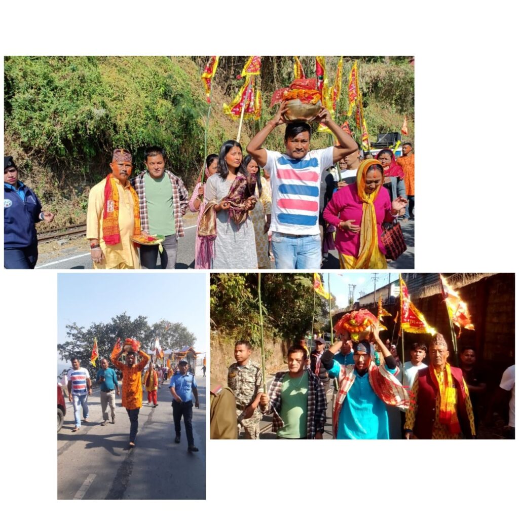 खरसाङ: अयोध्या श्रीराम भूमिबाट ल्याइएको पवित्र कलशलाई लिएर आज तीनधारे क्षेत्रमा कलश यात्राको आयोजना गरिएको छ। कलश यात्रा सञ्चालन समिति तीनधारेको आयोजनामा उक्त पवित्र कलश तीनधारेको ब्लु डाईमण्ड स्कूल परिसरबाट गैरी गाउँको मन्दिरसम्म निकालिएको छ। गत १७ दिसम्बरमा अयोध्याबाट ल्याइएको कलश आगामी २२ जनवरीको दिन खरसाङको राम मन्दिरमा प्रतिस्थापित गरिन अघि खरसाङके विभिन्न स्थानहरूमा भ्रमण गराइएको र यसै अवसरमा आज तीनधारे क्षेत्रमा परिदर्शन गराइएको छ। उक्त पवित्र कलश तीनधारेको गैरी गाउँस्थित मन्दिरमा आज राखेर भोलि शुक्रबार सत्र माइवको मन्दिरमा राखेर पुन: पर्सीको दिन खरसाङ लाने भएको छ भनी तीनधारेबाट अभिजित दासले जानकारी गराएका छन्। उनले बताए अनुसार उक्त कलशलाई ल्याएर गैरी गाउँको मन्दिरमा राख्नलाई पण्डित फणिन्द्र उपाद्ययद्वारा पूजा अर्चना गरेर राखिएको छ।