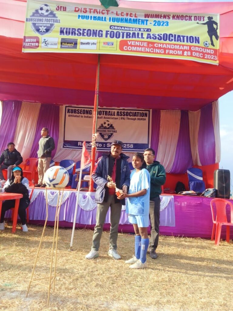 खरसाङ: खरसाङ फुटबल एसोसिएशनद्वारा आयोजित तेस्रो अन्तर जिल्ला महिला फुटबल प्रतियोगिताको पहिलो सेमिफाइनल आज स्थानीय चानमारी मैदान खरसाङमा सम्पन्न भएको छ। उक्त पहिलो सेमी फाइनल खेल आरभीके फुटबल अकादमी डुवर्स र मिलन मोड एफसीमाझ सम्पन्न भएको छ। आजको यस खेलमा मुख्य अतिथिक रूपमा मकैबारी चियाबारीका मुख्य प्रबन्धक सञ्जय दास उपस्थित थिएवभने विशिष्ट अतिथिको रूपमा सहायक प्रबन्धक पेमा लामा, बिधान राई, चानमारी आर्मी युनिटका सुबेदार एसके सलिम अनि अन्य उपस्थित थिए।