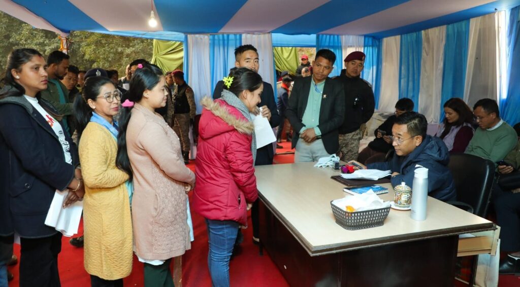 सोरेङ: जुम सालघारी समष्टिमा हिजोदेखि शुरु भएको जन भेट कार्यक्रमको आज दोस्रो दिन पनि अतिनै ऊर्जाको साथ मुख्यमन्त्रीले स्थानीयहरूसँग भेट गरे। आज मुख्यमन्त्री तामाङले बिहान १० बजीदेखि स्थानीय जनतासँग साक्षात्कार बन्दै उनीहरूको गुनासो साथै समस्या पनि सुने।