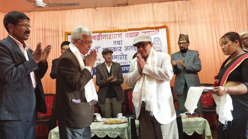 बाग्राकोटः वरिष्ठ लेखक, अनुवादक, पत्रकार तथा सम्पादक सुवास दीपकलाई १३औँ बद्रीनारायण प्रधान स्मृति पुरस्कार-२०२४ अर्पण गरिएको छ। पश्चिम डुवर्सको बाग्राकोटमा आज एक भव्य समारोहमा श्री दीपकलाई अङ्ग वस्त्र, स्मृति-चिन्ह र नगद राशि १५००१ रुपियाँसहितको बद्रीनारायण प्रधान स्मृति पुरस्कार अर्पण गरिएको हो। बद्रीनारायण प्रधान स्मृति प्रतिष्ठानले सन् २०१२ देखि प्रत्येक वर्ष सर्वभारतीय स्तरमा यो पुरस्कार नेपाली साहित्यका विशिष्ट साहित्य साधकलाई अर्पण गर्दै आएको छ। बद्रीनारायण प्रधानको ९६औँ जन्मजयन्तीको अवसरमा आयोजित पुरस्कार अलङ्करण समारोहलाई वरिष्ठ लेखक तथा बुद्धिजीवी डा. हर्कबहादुर छेत्रीले अध्यक्षता गरेका थिए भने सिक्किम केन्द्रिय विश्वविद्यालय नेपाली विभाग प्रमुख एवं वरिष्ठ समालोचक डा. कविता लामा कार्यक्रममा मुख्य अतिथिको रूपमा उपस्थित थिइन्। यसैगरी, सुवास दीपक, वरिष्ठ अधिवक्ता तथा अनुवादक अनमोल प्रसाद, वरिष्ठ समालोचक डा. मोहन पी. दाहाल, वरिष्ठ लेखक गोपालसिंह विश्व, वरिष्ठ पत्रकार पेमा वाङ्चुक एवं असम गोर्खा सम्मेलनका अध्यक्ष कृष्ण भूजेल अतिथिका रूपमा आसिन थिए।