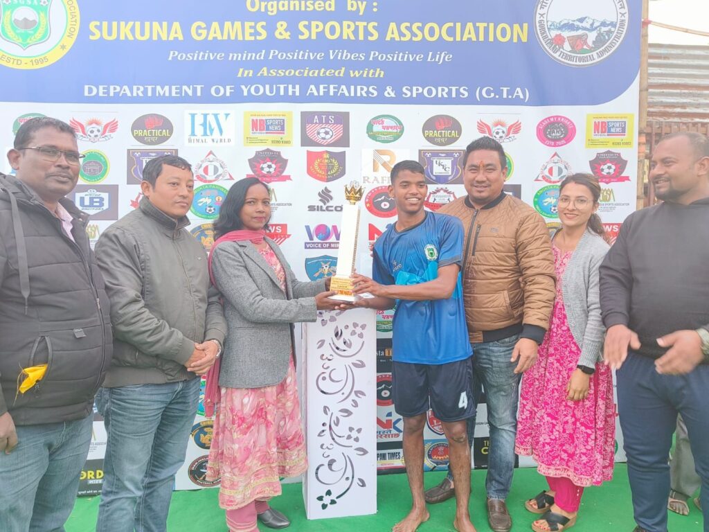 १५ जनवरीः सुकना गेम्स एण्ड स्पोर्ट्स एसोसिएशनको आयोजन अनि युवा मामिला एवम् खेलकुद विभाग, जीटीए-को सहयोगमा जारी सुकना गोल्ड कप फूटबल टुर्नामेण्टको १७औं संस्करणमा सुकना युनाइटेड फूटबल क्लबले रोमाञ्चक जीतको साथ प्री-क्वार्टर फाइनलमा स्थान बनायो । सोमवार सुकना हाई स्कूल खेल मैदानमा भएको टुर्नामेण्टको शुरुवाती चरणको अन्तिम म्याचमा सुकना युनाइटेडले ३/९ जीआर, बेंगडुबीलाई ३-२-ले पराजित गऱ्यो। विजेता टीमबाट विभास सौरियाले छैटौं, विजय तिग्गाले ६७औं र सुशिल नाइकले ८०औं मिनटमा गोल गरे। यसरी ३/९ जीआर-बाट शिव सुवेदीले मध्यन्तरको ठीक अघि अनि मनीष मल्लले ५१औं मिनटमा गोल गरे। सुकना युनाइटेडका सुशिल नाइकलाई प्लेयर अव् द म्याच चयन गरियो। अब मंगलवार खेलिने पहिलो प्री-क्वार्टर फाइनल म्याचमा एटीएस कलकत्ता र युनाइटेड खरसाङ फूटबल क्लब (यूकेएफसी)-बीच भिड़न्त हुनेछ।