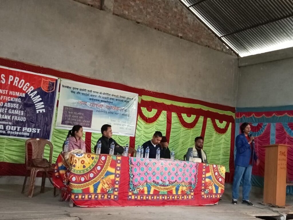 यस कार्यक्रमको अध्यक्षता स्थानीय वरिष्ठ नागरिक एके देवानले गरेका थिए भने प्रमुख अतिथिको रूपमा शिवखोला ग्राम पञ्चायतको पञ्चायत प्रधान मोहनकुमार प्रधान उपस्थित रहेका थिए। शिक्षक डीपी प्रधानले सञ्चालन गरेको यस सचेतना कार्यक्रममा प्रमुख वक्ताको रूपमा कञ्चनजंघा उध्दार केन्द्रकी सचिव रंगु सौरिया उपस्थित थिइन्। उनले कार्यक्रममा मानव तस्करी विषयमा स्थानीयहरूलाई सचेत गराएका थिए। त्यसरी नै कार्यक्रममा तीनधारे पुलिस आउट पोष्टको ओसी बीरेन्द्र छेत्रीले विभिन्न विषयहरू जस्तै – अनलाइन धोकाधड़ी, साईबर क्राइम, ड्रग्स, ट्राफिक नियम, बाल विवाह आदि विषयहरूमा सचेतना गराएका थिए। त्यसरी नै कार्यक्रममा गोपाल छेत्रीले घरेलु ग्यास, राहुल शर्माले स्वास्थ्य साथी कार्ड अादि विषयमा मानिसहरूलाई सचेतना गराएका थिए।