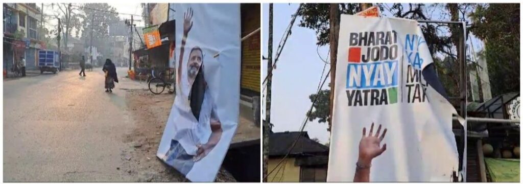 जलपाइगढी। धुपगुडीपछि यसपटक जलपाइगढी सहरमा पनि राहुल गान्धीको पोस्टर च्यातिएको घटना बाहिर आएको छ। आइतबार बिहान सात बजे राहुल गान्धीको पोस्टर च्यातिएपछि ठूलो हंगामा भएको थियो। राहुल गान्धी केही घण्टापछि जलपाइगढी सहर पुग्ने कार्यक्रम रहेको छ भने राहुल गान्धी जलपाइगढी सहर पुग्नुअघि नै कंग्रेसले झण्डा र ब्यानरले सहर सजाइसकेको छ। तर, यसैबीच रातको अँध्यारोमा राहुल गान्धीको तस्बिरसहितका ब्यानरहरू च्यातिएका छन्। बिहान सात बजे कंग्रेसको झण्डा भुइँमा फेला परेपछि जलपाइगढी सहरमा हंगामा मच्चियो।