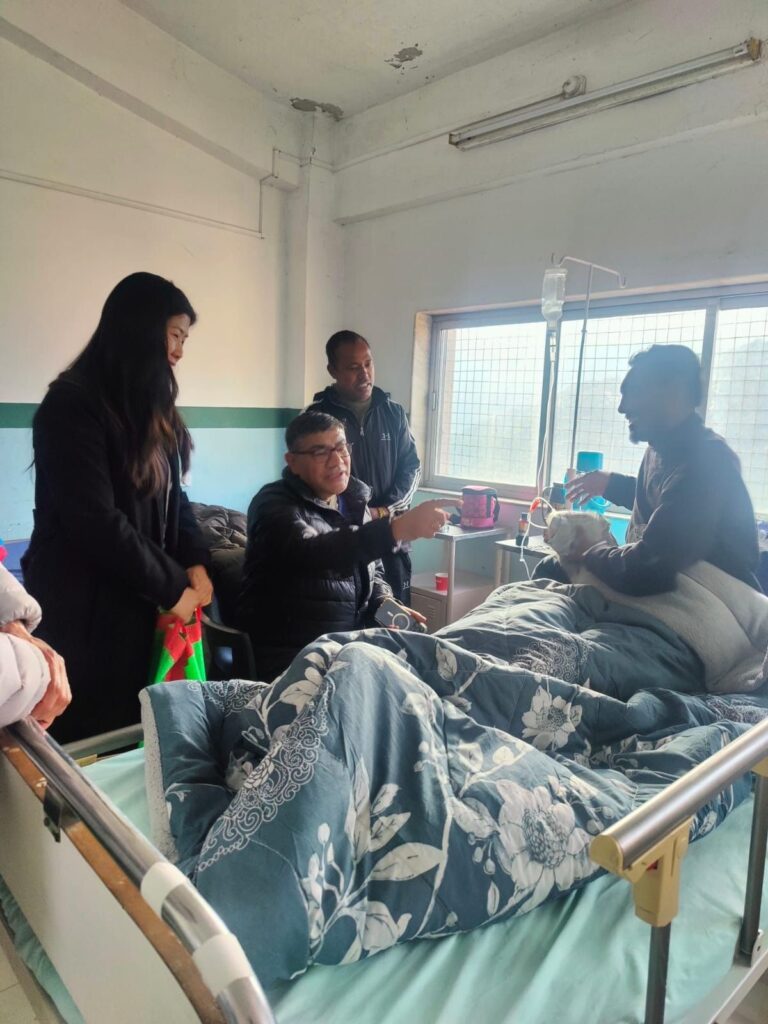 गान्तोक: हिजो साँझ रानीपुलमा भएको भीषण दुर्घटनामा घाइते भएर मणिपाल अस्पतालमा उपचाराधीन रहेका घाइतेहरूलाई भारतीय जनता पार्टी, सिक्किम प्रदेश अध्यक्ष एवं अप्पर बुर्तुकका विधायक डीआर थापाले भेट गरेर स्वास्थ्य स्थितिको जायजा लिएका छन्।