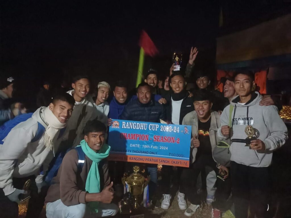 मिरिक: मिरिकको ओकाइटी टी स्टेटमा रंगधू प्रतिभा संघद्वारा आयोजित ओपन नक्आउट फूटबल टुर्नामेण्टमा सिलगढ़ीको ब्रदर्स युनाइटेड फूटबल एकाडमी च्याम्पियन भयो। शनिवार खेलिएको फाइनलमा बिदुर छेत्रीको प्रशिक्षणमा रहने ब्रदर्स युनाइटेड फूटबल एकाडमीले रामु युथ बोइज मिरिक (गोदामधुरा)-लाई ७-४-ले पराजित गऱ्यो। च्याम्पियन टीमलाई आकर्षक ट्रफीको साथमा ५० हजार रुपियाँको नगद पुरस्कार प्रदान गरियो।