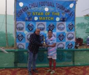 खरसाङ: महिला फूटबल खेल र खेलाड़ीहरूलाई प्रोत्साहन प्रदान गर्ने लक्ष्यको साथ खरसाङ फूटबल एसोसिएशन (केएफए)-ले युवा मामिला एवम् खेलकुद विभाग, जीटीए-को विशेष सहयोगमा आयोजन गरेको गोर्खा चेली फूटबल टुर्नामेण्टको दोस्रो संस्करणमा सिक्किमको सोरेंग फूटबल क्लबले रोमाञ्चक जीतको साथ फाइनलमा स्थान बनायो। उत्तर बंगालकै सबैभन्दा ठूलो यस महिला टुर्नामेण्टअन्तर्गत चानमारी खेल मैदानमा शुक्रवार खेलिएको दोस्रो सेमिफाइनल म्याचमा सोरेंग एफसी-ले ओडिशाको नीता फूटबल एकाडमी (एनएफए)-लाई २-०-ले पराजित गऱ्यो। विजेता टीमबाट लाकु भूटिया र सुश्मिता लेप्चाले गोल गरिन्। सोरेंग एफसी-की सुश्मिता लेप्चालाई प्लेयर अव् द म्याच चयन गरियो, जसलाई आजका अतिथि पेमेन्द्र गुरुङ (अध्यक्ष, खरसाङ ब्याडमिण्टन एसोसिएशन)-को बाहुलीबाट पुरस्कार प्रदान गरियो। अब आइतवार (१८ फरवरी) खेलिने फाइनलमा सिक्किमको सोरेंग एफसी र तमिलनाडु पुलिसबीच भिड़न्त हुनेछ।
