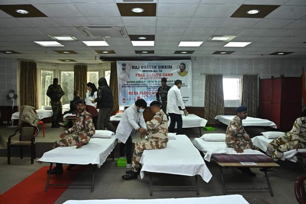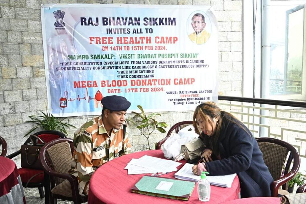 गान्तोक: राजभवनमा आयोजित हाम्रो संकल्पः विकसित भारत पुष्पित सिक्किम कार्यक्रमको दोस्रो दिन आज राज्यपाल लक्ष्मण प्रसाद आचार्यले मेगा रक्तदान शिविरको उद्घाटन गरे। राज्यपाल लक्ष्मण प्रसाद आचार्यको निर्देशनमा मेगा रक्तदान कार्यक्रम सप्ताहव्यापी कार्यक्रमको एक महत्वपूर्ण भाग हो।