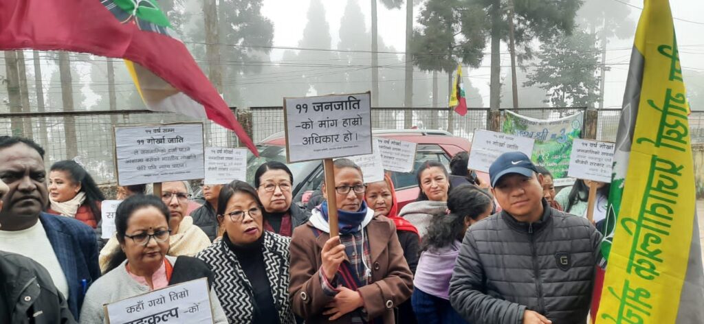 खरसाङ: भारतीय गोर्खा प्रजातान्त्रिक मोर्चाद्वारा मिशन जागरण अन्तर्गत खरसाङ खण्ड विकास कार्यलयमा आज पनि विरोध प्रदर्शन गरिएको छ।भारतीय गोर्खा प्रजातान्त्रिक मोर्चा केन्द्रीय अध्यक्ष अनित थापाद्वारा पहाड़काे जनतालाई जागरुक बनाउन मिशन जागरण, अन्र्तगत आज दोस्रो दिन पनि धारावाहिक रूपमा भारतीय जनता पार्टीले पहाडको जनतासँग कोल्टे राजनीति गर्दै गोर्खा जातिको एघारवटा जात-गोष्ठीहरूलाई केन्द्र सरकारले जनजातिको मान्यता नदिएको विराेधमा खरसाङ खण्ड विकास कार्यालयमा विरोध प्रदर्शन गरिएको छ। उक्त विरोध प्रदर्शनमा भागाेप्रमो नारी शक्तिका अध्यक्षा तथा खरसाङ खण्ड पञ्चायत समितिका सभाधिपति अनु प्रधान, उप सभापति नारायण थापा, खरसाङ महकुमा समितिका अध्यक्ष सुभास प्रधान अनि खरसाङ टाउन कमिटीका अध्यक्ष राजु शर्मा अनि कार्यवाहक सचिव बीरबल पाखरीनकोे नेत्तृत्वमा खरसाङ खण्ड विकास कार्यालय मा विराेध प्रदर्शन गरिएको छ। उक्त विरोध प्रदर्शनमा महकुमा समिति का सभापति सुभाष प्रधानले धरणा प्रदर्शनमा उपस्थित भएका सम्पूर्णलाई विरोध प्रदर्शन विषय साथै भावी कार्यक्रमकाे विषयमा जानकारी दिन्दै सम्बोधन गरेका थिए। यसमा खरसाङ पञ्चायत समितिका उप सभापति नारायण थापा अनि खरसाङ टाउन कमिटीका सभापति राजु शर्माले वक्तव्य राख्दै उपस्थित भारतीय गोर्खा प्रजातान्त्रिक मोर्चाका सम्पूर्ण नेतृत्वलाई संगठनकाे निम्ति कार्य गरिदिने आह्वान् गरे।