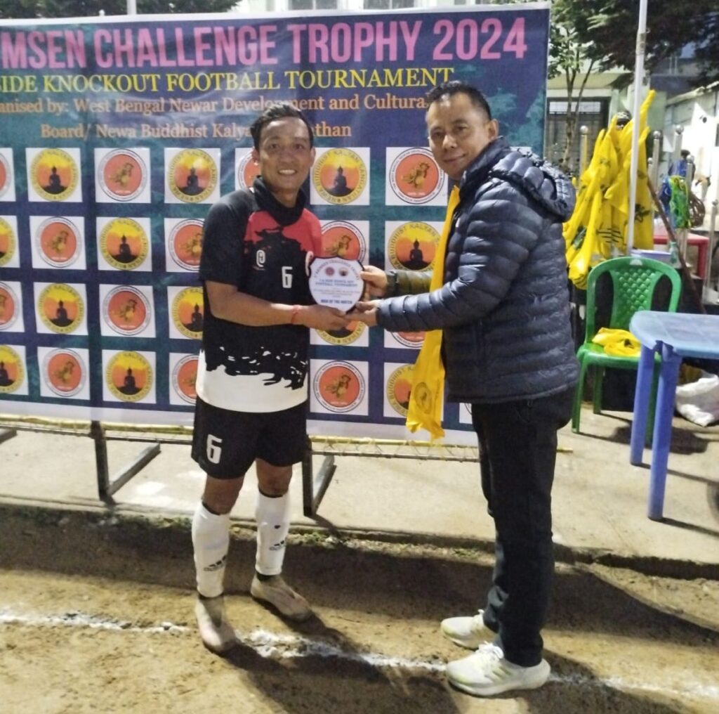 खरसाङ: हिल फुटबल एकाडेमी खरसाङमा भईरहेको पहिलो भीमसेन च्यालेञ्ज ट्रफी फुटबल टुर्नामेन्टको फाईनलमा प्रवेस गरेको छ। गत २६ जनवरीदेखि खरसाङको नयाँ बजारस्थित डब्ल्युबीएनभीएफ खेल मैदानमा पश्चिम बंगाल नेवार विकास बोर्डको आयोजनामा भईरहेको पहिलो भीमसेन च्यालेञ्ज ट्रफी फुटबल टुर्नामेन्टको पहिलो सेमी फाईनल खेल आज सम्पन्न भएको छ। उक्त पहिलो सेमी फाईनल खेल हिल फुटबल एकाडेमी खरसाङ र नाम्सु मिरिकमाझ सम्पन्न भएको छ। उक्त खेलमा हिल फुटबल एकाडेमीले नाम्सु मिरिकलाई २-१ गोलको अन्तरले पराजित गर्दै फाईनलमा प्रवेस गरेको छ। आजको खेलमा हिल फुटबल एकाडेमीको वाङ्चुक तामाङलाई म्यान अफ् द म्याच चयन गरिएको छ। उनलाई आजके खेलको मुख्य अतिथिको रूपमा उपस्थित पश्चिम बंगाल नेवार विकास बोर्डको चेयरम्यान सुनिल प्रधानको बाहुलीबाट पारितोषिक वितरण गरिएको छ। अब भोलि शुक्रबार हुने दोस्रो सेमी फाईनल खेल अलि बक्स सेभेन र सालबारी ब्रेभ ब्लुमाझ हुनेछ।