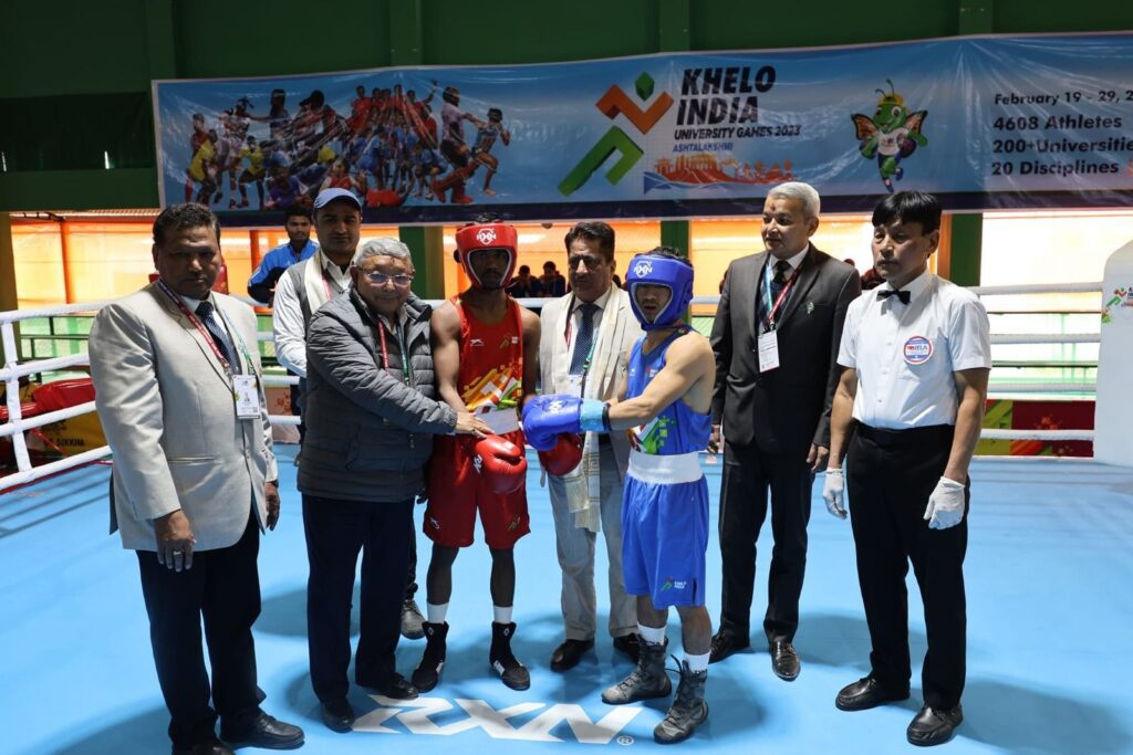 गान्तोक: खेलो इण्डिया विश्वविद्यालय आस्थालक्ष्मी खेल २०२३ अन्तर्गत आज राजधानीस्थित पाल्जर स्टेडियमको जिम्नेजियम हलमा मेन्स बक्सिङ प्रतियोगिता शुरू भयो। यस अवसरमा राज्यका शिक्षा विभाग मन्त्री केएन लेप्चा मुख्य अतिथिकोरूपमा उपस्थित रहेका थिए।