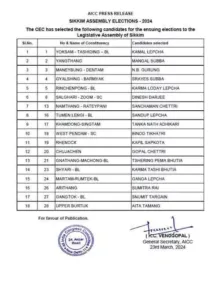 दिल्ली: कांग्रेसले आगामी सिक्किम विधानसभा चुनावको लागि १८ उम्मेदवारको पहिलो सूची जारी गरेको छ।