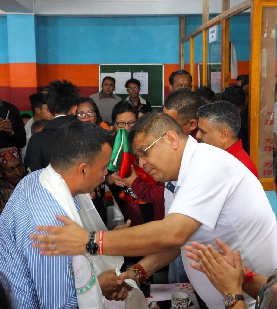 गान्तोक: नामथाङ रातेपानी निर्वाचनबाट आज सिटिजन एक्सन पार्टी र एसडीएफ पार्टीका कार्यकर्ताहरू एसकेएम पार्टीमा आधिकारिकरूपमा सामेल भए। आज नामथाङस्थित एसकेएम पार्टी कार्यालयमा पहिलो चुनावी समन्वय सभा सम्पन्न भयो। उक्त सभामा निवर्तमान मन्त्री सञ्जीत खरेल लगायत अन्यहरूको पनि उपस्थिति रहेको थियो। आज पार्टीमा सामेल हुनेहरूलाई उम्मेद्वार खरेलले खदा लगाएर पार्टीमा स्वागत जनाए। आफ्नो सम्बोधनको क्रममा खरेलले एसडीएफको कार्यकालमा चयनित बनेका लोकसभा सांसदले नामथाङ रातेपानी निर्वाचन क्षेत्रलाई अदेखा गरेको र यस निर्वाचन क्षेत्रमा कुनै प्रकारको विकासका कार्यहरू नगरेको दावी गरे। तर एसकेएम पार्टीबाट विजयी बनेका सांसद इन्द्र हाङ सुब्बाले भने यस निर्वाचन क्षेत्रको निम्ति धेरै कामहरू गरेको पनि उनले उल्लेख गरे। पाँच वर्षमा एसकेएम पार्टीले यस निर्वाचन क्षेत्र साथै राज्यमा के-के काम गऱ्यो भन्नेबारेमा सबैलाई अवगत रहेको जानकारी गराउँदै स्थानीय जनताको साथ नै आफ्नो निम्ति प्रेरणाको स्रोत रहेको बताए। आगामी १९ अप्रेलमा सम्पन्न हुने सिक्किम विधानसभा र लोकसभा चुनाउलाई शान्तिपूर्वक ढङगमा सम्पन्न गराउनको निम्ति पार्टी कार्यकर्ताहरूले अहंम भूमिका निर्वाह गर्नुपर्ने उनले अपील गरे। वर्तमान परिपेक्ष्यमा विपक्षी दलहरूले राज्य बाहिरबाट मानिसहरू ल्याएर राज्यमा अशान्ति उत्पन्न गराउन षडयन्त्र गरिरहेको हुनाले यसबारेमा एसकेएम पार्टीका कार्यकर्ताहरू सचेत रहनुपर्ने सुझाउ दिए। हाल पञ्चायत, जिल्ला पञ्चायत र वार्डलेवल समिति एक भएको हुनाले अब एसकेएम पार्टीलाई कुनै पनि शक्तिले सरकार गठन गर्नबाट रोक्न नसक्ने खरेलले दावी गरे। यसै क्रममा हालै मात्र एसकेएम पार्टीमा सामेल भएका डा. अनुप खरेलले एक वर्षसम्म एसकेएम पार्टीमा रहेर कार्य गरेको अनुभव व्यक्त गरे। एसडीएफ पार्टीले सर्वसाधरण जनतालाई थाङनामा सुत्नाउने कार्य गरेको बताए।