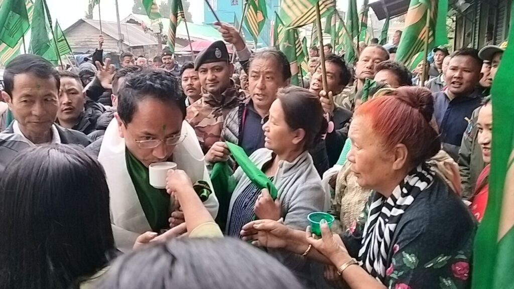 सोनादा: दार्जीलिङ संसदीय सिटको लागि भारतीय जनता पार्टीको प्रार्थी राजु विष्टको पक्षमा गोरामुमो अध्यक्ष मन घिसिङले विभिन्न स्थानहरूमा चुनाव प्रचार गरिरहेका छन्। यसै क्रममा उनले आज सोनादामा र्यालीको साथमा राजु विष्टलाई भारी मतले जिताउन जनसम्पर्क अभियान गरेका छन्। सोनादाको पेट्रोल पम्पदेखि सोनादा बजार परिक्रमा गरी अप्पर सोनादा डाँडा, डीबी रोड, स्वरस्वती डाँडा, गोराबारी, मार्ग्रेटहोप, रिङटङ, अनि बालासनमा अध्यक्ष मन घिसिङलाई जनताद्वारा स्वागत जनाएको छ। आजको जनसम्पर्क अभियान विषय लिएर खरसाङ ब्राञ्च कमिटीको प्रचार प्रसार सचिव भुपेन्द्र गुरुङले जानकारी दिन्दै भने, अध्यक्ष मन घिसिङको जनसम्पर्क अभियानले सोनादावासीमा धेरै उत्साह आएको छ। जनताले उनलाई स्वागत जनाएको छ। विपक्षले नानाथरीको कुरा गर्दै हिड्छ। जीटीएमा सबै भूमी पुत्र छ खोइ त विकास? भ्रष्टाचार भाईभतिजावाद मात्र गरेको छ। क्षेत्रीयताको कुरा गर्छ। के टीएमसी क्षेत्रीय दल हो त? गोपाल लामालाई टीएमसीलाई उम्मेदवार बनाएर पहाडमा टीएमसीको नाममा भोट माग्नु सकेको छैन। हिम्मत छ भने टीएमसीको झण्डा बोकेर भोट माग्ने भूपेन गुरुङले चुनौती समेत दिए। प्रधानमन्त्री नरेन्द्र मोदीले गोर्खाहरुको मुद्दालाई संवेदनशील बताएर। अब गोर्खाहरुको समस्या समाधानको नजिक रहेको जनाएपछि संकल्प पत्रको जरुरत छैन। पहाडको भूमि पुत्रहरुले सबै सक्यो हामीलाई लथालिङ्ग बनायो। राजु विष्ट भनेको कर्मपुत्र हो उसले कार्य गरेको छ गोर्खाहरुको निम्ति। अब मुद्दा पार लगाउन र हाम्रो खोसिएको हक र अधिकार दिलाउन हाम्रो शिक्षित युवा युवतीहरुलाई न्याय दिलाउन भारी मतले जिताउनु पर्छ।