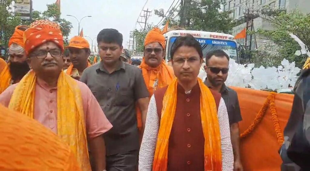सिलगढी: सिलगढीमा आज रामनवमी पर्व मनाइँदैछ। एकपछि अर्को नगरमा भक्तहरुको र्याली निस्किरहेको छ। दार्जीलिङ लोकसभा समष्टिबाट भाजपाका उम्मेदवार राजु विष्ट, सिलगढी विधायक शंकर घोष, मतिगढा-नक्सलबारीका विधायक आनन्दमय बर्मन, फाँसीदेवाका विधायक दुर्गा मुर्मु लगायत धेरै भाजपा नेताहरूले रामनवमीको शोभायात्रामा भाग लिए। उल्लेखनीय छ, दार्जीलिङ जिल्ला तृणमूल कांग्रेसकी अध्यक्ष पापिया घोष, जिल्ला युवा तृणमूल कांग्रेस अध्यक्ष थिरान रोय र अन्य तृणमूल कांग्रेस नेताहरू पनि यसै शोभायात्रामा राजु विष्ट र शंकर घोषको साथमा सहभागी थिए। दुवै पार्टीका एकअर्काले खादा लगाएर प्रसाद आदानप्रदान गरेर शिष्टाचार गरेको असल राजनैतिक संस्कार देखियो।