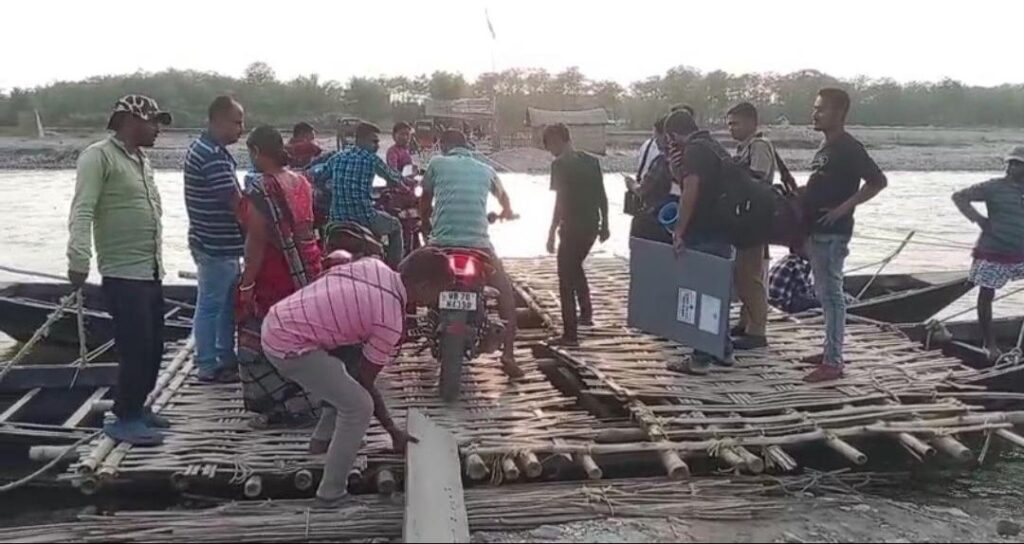 अलिपुरद्वार: मतदान कर्मचारीहरू रायडक नदी पारी डुङ्गाबाट कुमारग्राम ब्लकको जयदेवपुरका लागि प्रस्थान गरे। कुमारग्राम ब्लकको बुथ १०/६२जयदेवपुरमा ४२१ मतदाता छन्।