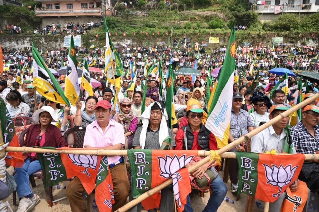 खरसाङ: दार्जिलिङ संसदीय सिटको लागि भारतीय जनता पार्टीको प्रार्थी राजु विष्टको समर्थनमा खरसाङको मन्टिभियट खेल मैदानमा भारतीय जनता पार्टीको आयोजनामा चुनावी जनसभा सम्पन्न भएको छ। उक्त चुनावी जनसभा क्रामाकपाको नेतृत्व एंव पूर्व सांसद आरबी राईको अध्यक्षता र केन्द्रीय भू विज्ञान मन्त्री किरण रिजिजुको प्रमुख आतिथ्यमा सम्पन्न भएको छ। उक्त जनसभामा स्वागत सम्भाषण भारतीय जनता पार्टी दार्जिलिङ जिल्ला सचिव सोनाम लामाले राखेका थिए भने जनसभालाई गोरानिमो अध्यक्ष दावा पाख्रिन, क्रामाकपाबाट जेबी राई, गोरामुमोबाट निमा लामा, दार्जिलिङका भाजपा विधायक निरज जिम्बा, गोजमुमो अध्यक्ष बिमल गुरुङ, प्रदीप प्रधान, डा. महेन्द्र पी लामा, भारतीय जनता पार्टीको प्रार्थी राजु विष्ट र केन्द्रीय मन्त्री किरण रिजिजु आदिले वक्तव्य राखेका थिए।