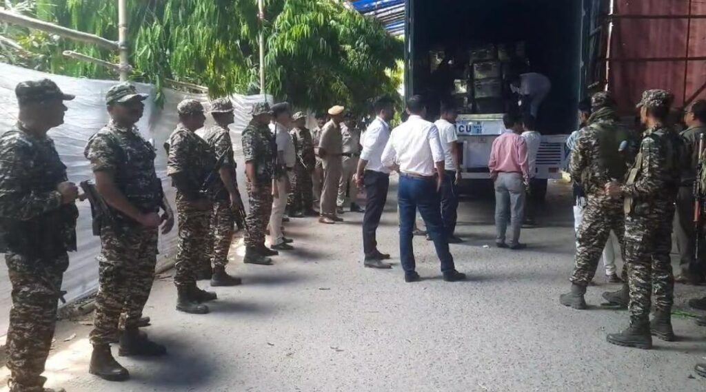 सिलगढी: दार्जीलिङका जिल्लापाल प्रियंका गोयल, सिलगढी पुलिस आयुक्तालयका वरिष्ठ पुलिस अधिकारीहरू, उप-विभागीय आयुक्तहरू, बीडीओहरू, पर्यवेक्षकहरू र राजनीतिक दलका उम्मेदवारहरूको चुनावी एजेन्टहरूको उपस्थितिमा शनिबार मतदान पछि स्क्रुटिनी प्रक्रिया पूरा भयो। राज्यको सत्तारुढ तृणमूल कांग्रेसले कुनै कमी वा गुनासो रिपोर्ट गरेको छैन। तर, भाजपा उम्मेदवारका चुनावी एजेन्टहरूले धेरै गुनासो गरेका थिए। ती उजुरीका आधारमा निर्वाचन आयोगले माइक्रो पर्यवेक्षक, सीसीटीभी फुटेज र वेबकास्टिङको रिपोर्ट हेरेर उजुरीको सत्यता पुष्टि गरेको थियो। यसपछि चोपडा विधानसभाबाट आएको ईभीएम मेसिन र भीभी प्याट जाँच गरी स्ट्रङ्ग रुममा राखेर सिल गरियो।