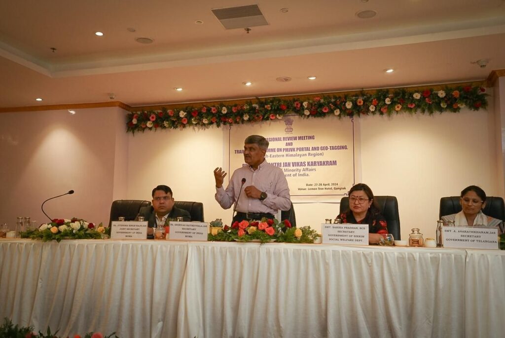 गान्तोक:भारत सरकारको अल्पसंख्यक मामिला मन्त्रालय अन्तर्गतको जियो ट्यागिङमा समीक्षा बैठक र प्रशिक्षण कार्यक्रम आज गान्तोकको एक स्थानीय होटलमा सुरु भयो। कार्यक्रम दुई दिनसम्म हुने भएको छ। मन्त्रालयका सचिव श्रीनिवास कार्तिकितलाकारको अध्यक्षतामा, प्रशिक्षण कार्यक्रम भएको हो। जसमा जितेन्द्र सिंह राजे संयुक्त सचिव, परियोजना व्यवस्थापन अधिकारी लगायत उत्तर पूर्वी राज्यहरूका प्रतिनिधिहरू सहभागी थिए। तेलङगाना र कर्नाटकका प्रतिनिधिहरू पनि उपस्थित थिए। कार्यक्रममा सिक्किम सरकारको समाज कल्याण विभागद्वारा तयारी गरिएको थियो।