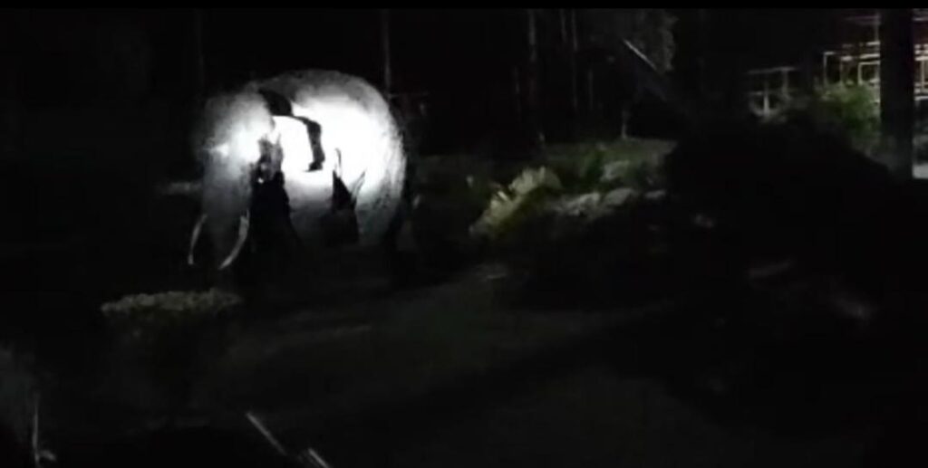 जलपाईगढी: रातिको अँध्यारोमा रिसोर्टमा एक्कासी हात्ती आइपुग्दा मानिसहरु त्रसित भएर भागदौड मच्चियो। मंगलबार राति नजिकैको गरुमारा जंगलबाट डुवर्सको मटेली ब्लकस्थित निजी रिसोर्टमा एउटा हात्ती निस्किएको थियो। हात्ती देखेपछि त्यहाँ उपस्थित पर्यटकहरु डराए। तर, रिसोर्टमा उपस्थित केही उत्साहित पर्यटकले हात्तीको फोटो पनि खिचे। हात्ती केही बेर रिसोर्ट भित्र घुम्यो र त्यहाँबाट निस्कियो। हात्तीले रिसोर्टमा कुनै क्षति पुर्याएको छैन। यसअघि पनि केही रिसोर्टमा हात्तीले विनाश मच्चाएको थियो। तर यहाँ हात्ती रिसोर्ट कम्प्लेक्सको वरिपरि मात्र घुमेर जंगलमा फर्कियो।