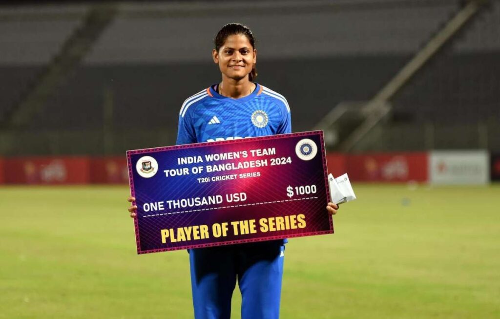 यसबाहेक स्मृति मन्धनाले ३३, कप्तान हरमनप्रीत कौरले ३० र रिचा घोषले २८ रनको योगदान दिइन्। बंग्लादेशकी बलरहरूमा राबेया खान र नाहिदा अक्तरले २-२ विकेट हासिल गरिन्। जवाफमा बंग्लादेशले २० ओभरमा ६ विकेट गुमाएर १३५ रन मात्र बनाउन सक्यो। रितु मोनीले ३३ बलमा ४ वटा चौकाको साथ सर्वाधिक ३७ रन बनाइन्। यसबाहेक शोरिफा खातुनले अविजित २८ र रुब्या हैदरले २० रनको योगदान दिइन्। भारतीय बलरहरूमा राधाले ३ र आशा शोभनाले २ विकेट हासिल गरिन्। म्याचमा ३ विकेटको साथमा सीरीजमा जम्मा १० विकेट हासिल गर्ने राधा यादवलाई प्लेयर अव् द म्याच र प्लेयर अव् द सीरीज चयन गरियो।