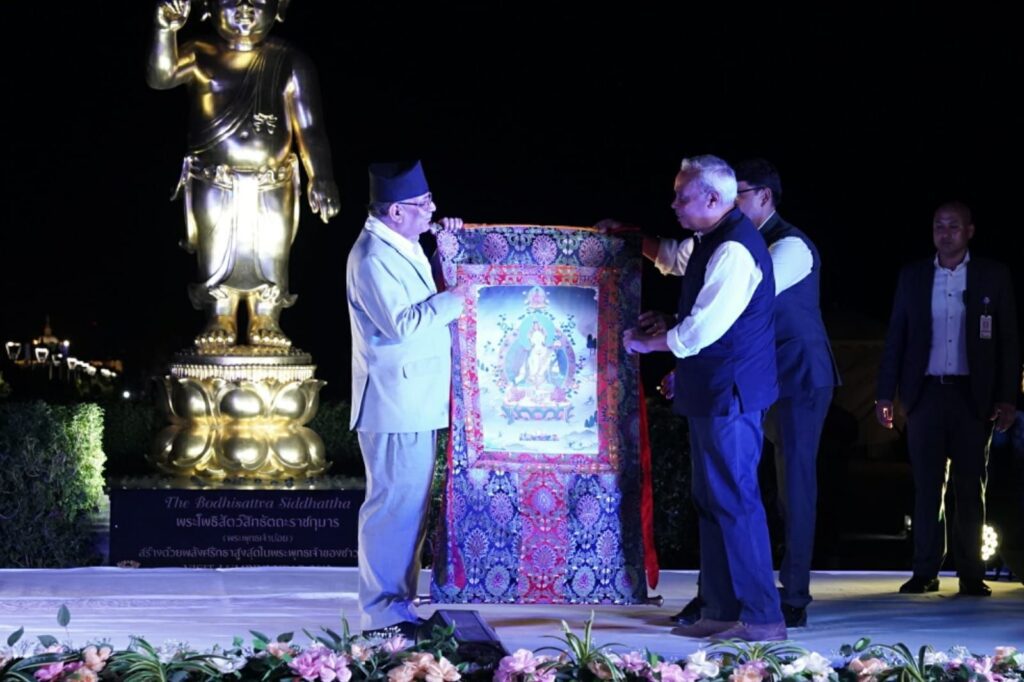 राजदूत श्रीवास्तबले प्रधानमन्त्रीलाई सिक्किम भवनको एक बिस्तृत थांगका उपहार भेट दिएका थिएl