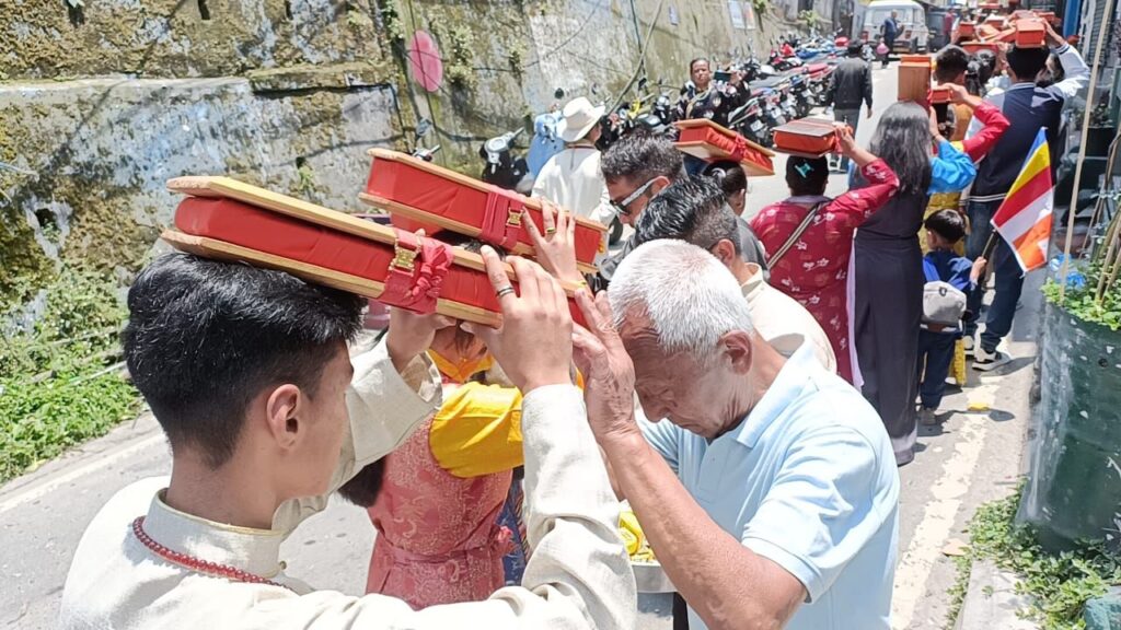 खरसाङ: शेर्पा एसोसिएशन खरसाङको आयोजनामा पनि खरसाङमा बुध्द जयन्ती पालन गरिएको छ। विगत धेरै वर्षदेखि खरसाङमा बुध्द जयन्ती पालन गर्दै आईरहेको शेर्पा एसोसिएशनको आयोजनामा शेडुप धार्गेलिङ बौध्द गुम्बामा यसपाली पनि तीन दिवसीय पूजाको साथमा बुध्द जयन्ती पालन गरिएको छ। शेर्पा एसोसिएशनको आयोजनामा सम्पन्न बुध्द जयन्ती समारोह अन्तर्गत बिहानको समय खरसाङ बजारमा धार्मिक रैली निकालेर नगर परिक्रमा गरिएको छ। उक्त रैली खरसाङको शेर्पा बस्तीस्थित शेर्पा गुम्बा परिसरबाट शुरु भएर मोटर स्ट्याण्ड हुँदै हिल कार्ट रोड भएर अस्पताल मोड़बाट वर्ध्दमान रोड हुँदै पुन: शेर्पा गुम्बासम्म पुगेर समापन गरिएको छ। उक्त रैलीमा मानिसहरूले बौध्द धर्म ग्रन्थ र धार्मिक ध्वाजाहरू बोकेका थिए भने मानिसहरूले ठाउँ ठाउँमा धर्म ग्रन्थलाई ढोग गर्दै सम्मान गरेका थिए। उक्त धार्मिक रैलीमा शेर्पा एसोसिएशन खरसाङको सभापति दावा शेर्पा, सचिव श्याम शेर्पा लगायत अन्यहरू उपस्थित रहेका थिए। उल्लेखनीय छ शेर्पा एसोसिएशन सन् १९५३ मा गठन गरिएको थियो भने शेर्पा बस्तीको गुम्बा सन् १९७५ मा निर्माण भएर विगत १९८० सालदेखि खरसाङमा शेर्पा एसोसिएशनको पक्षबाट बुध्द जयन्ती पालन गर्दै आईरहेको जानकारी प्राप्त भएको छ। उक्त बुध्द जयन्तीको अवसरमा निकालिएको रैली विषयमा पत्रकारहरूसित कुराकानी गर्दै शेर्पा एसोसिएशन खरसाङको सचिव एंव सभासद श्याम शेर्पाले शेर्पा एसोसिएशनद्वारा खरसाङमा विगत धेरै वर्षदेखि बुध्द जयन्ती पालन गर्दै आईरहेको र यसै अनुसार यसपाली पनि खरसाङको शेर्पा बस्तीमा रहेको शेडुप धार्गेलिङ बौध्द गुम्बामा बुध्द जयन्ती समारोह तीन दिवसीय पूजाको साथमा पालन गरिएको जानकारी गराएका छन्। उनले यस अवसरमा धार्मिक रैली पनि खरसाङ बजारमा निकालिएको बताएका छन्।