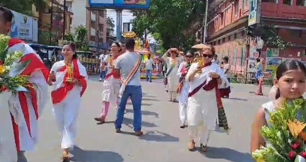 जलपाईगुडी: बुद्ध पूर्णिमाको अवसरमा आज विश्वमा शान्तिको सन्देश फैलाउने उद्देश्यका साथ जलपाईगुडी शहरमा बौद्ध सम्प्रदायका मानिसहरूले शोभायात्रा निकालेका छन्। बिहीबार दिउँसो जलपाईगुडी रेसकोर्स क्षेत्रमा रहेको गुम्बाबाट ठूलो शोभायात्रा निकालिएको थियो। यस दिन ठूलो संख्यामा बुद्ध धर्मावलम्बीहरुको शोभायात्रामा सहभागिता रहेको थियो। गौतम बुद्धको साना मूर्ति र टाउकोमा त्रिपिटक बोकेर महिलाहरुले शहर परिक्रमा गरेका थिए।
