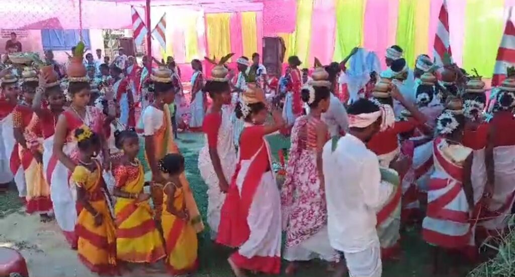 सामूहिक विवाह अघि स्थानीय बिर्किटी नदीमा र्याली निकालेर पानी ल्याइयो। आदिवासी महिलाहरुले बिहानैदेखि पूजाआजा गर्न थालेका थिए। पूजासँगै सार्वजनिक विवाह पनि भव्यताका साथ आयोजना गरियो। विवाह समारोहमा विभिन्न क्षेत्रका चार जोडी सहभागी भए। खजूरको रूखलाई साक्षीको रुपमा लिएर पुजारीले मन्त्र जप गरी विवाह सम्पन्न गरे।