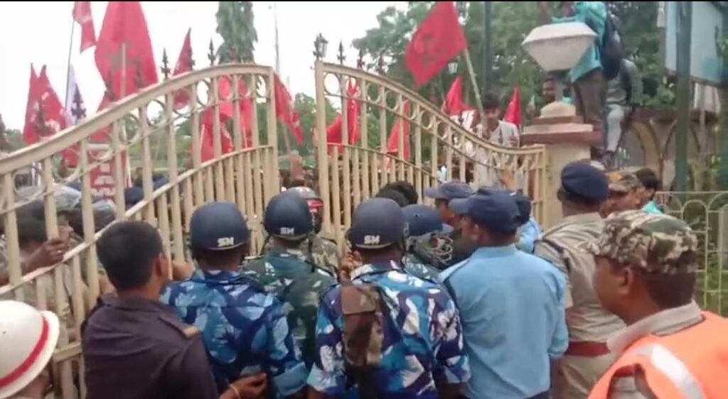 अखिल भारतीय कृषक सभा, अखिल भारतीय महिला संगठन र सीटुद्वारा आज विरोध कार्यक्रमको आयोजना गरिएको थियो। जिल्ला अधिकारीको कार्यालयमा छिर्न अघि नै प्रहरी प्रशासनले उनीहरुलाई गेटमा रोकेको थियो। सीपीआईएमका विभिन्न शाखाका सदस्यहरूले आफ्ना मागहरूका लागि उग्र रूपमा प्रदर्शन गरे।