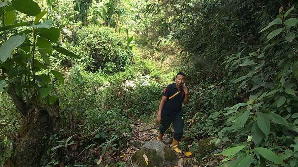 बाक्लो जंगलबीच ठाडो, उकालो तेर्सो, भिरालो बाटो- अर्को बाटो उस्तै रुखको मुढाबाट काली खोला पार गर्दै उनी मध्य रातको १२ बजे २ बजे निष्पट्ट अँध्यारोमा पनि मूल सडकमा जस्तै हिड्छन्l यस्तो बाटोमा उनी एक पटक मात्र होइन दिनमा तीन चार पटक हिड्छन्l उनीसित हिड्दै उनको कुरा सुन्दा दन्ते कथा सुनेको जस्तै लाग्छl रोमाञ्चक छ उनको यस्तो जीवनl बाक्लो जंगल र खोला हुँदै उनको ट्राउट माछाको फार्ममा पुग्दा वरिपरिकाका स्वच्छ वातावारणले भरिएका प्राकृतिक सौन्दर्यले अघि हिडेको अप्ठ्यारो बाटो र थकानलाई चट्टै बिर्साइदिन्छl विभिन्न चराहरूको अलग अलग सुमधुर आवाज, केही तलतिर बगिरहेको काली खोलाको हल्का आवाज, हल्का सिरसिरे हावा चल्दा आइरहने सुँइ…सुँइ…आवाज, वरिपरि बाक्लो हरियो जङ्गलको बीचमा बसेको जमिनमा यो फार्म बिछट्टै सुन्दर देखिन्छl