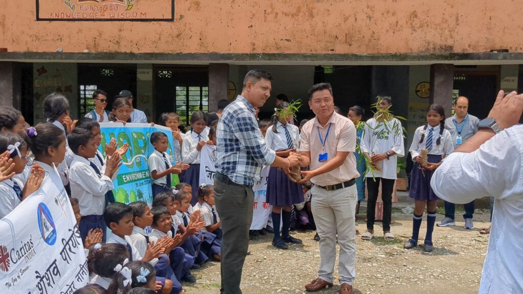 उनीहरूलाई स्कूल एवं संस्थाको पक्षबाट अर्को “विश्व पर्यावरण दिवस २०२५”-मा पुरस्कृत गरिने जनाए। साथै पब्लिक हेल्थ इन्जिनेरिङ डिपार्टमेन्टका खण्ड परियोजना संयोजक समन्तक राईले जल जीवन मिसन परियोजनालाई प्रतिनिधित्व गर्दै जल संरक्षणमा वृक्षको भुमिका ठूलो रहेको कारण विभागको पक्षदेखि वृक्ष प्रदान गरिरहेको छौ। तर यो वृक्ष अर्कोपाली मर्ने होइन नानीहरूले बचाएर राख्नु पर्ने जनाए।