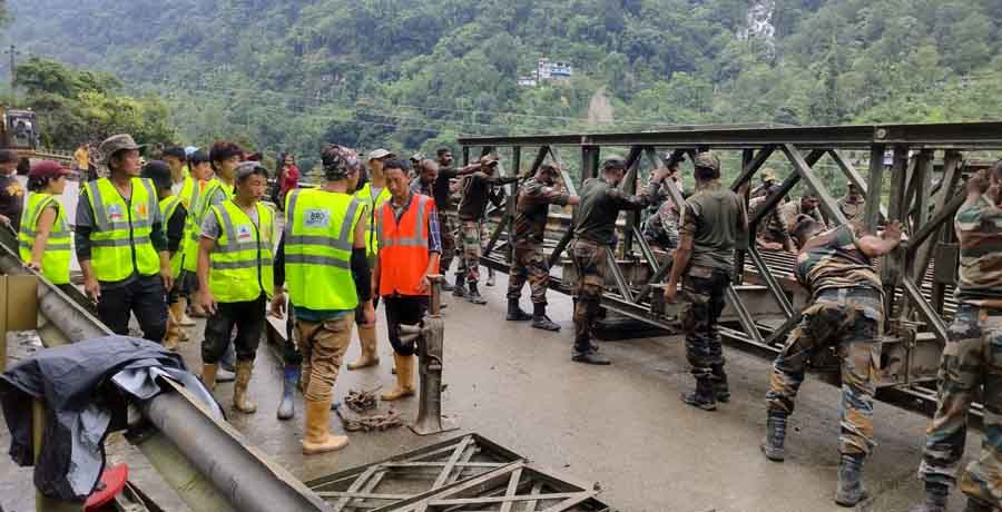 यो अवरोध हटाउन बीआरओले सेनासँगको समन्वयमा ७० फिट बेली ब्रिज सञ्चालनमा ल्यायो। यस क्षेत्रमा भारी मेसिनरीहरू र निर्माण स्टोरहरूलाई अगाडि बढाउँदै यो अभिनव दृष्टिकोण सक्षम भयो। बीआरओको द्रुत र कुशल कार्यले उत्तर सिक्किममा महत्त्वपूर्ण जडान पुनर्स्थापना गर्न लचिलोपन र दृढता देखायो। बीआरओका साहसी कार्यकर्ताहरूको नि:स्वार्थ प्रतिबद्धताले सबै पक्षबाट प्रशंसा कमाएको छ, र उत्तर सिक्किमको सम्पर्कको छिट्टै पुनर्स्थापनाको लागि सबैका बीचमा आशा जगाएको छ। -पीआईबी