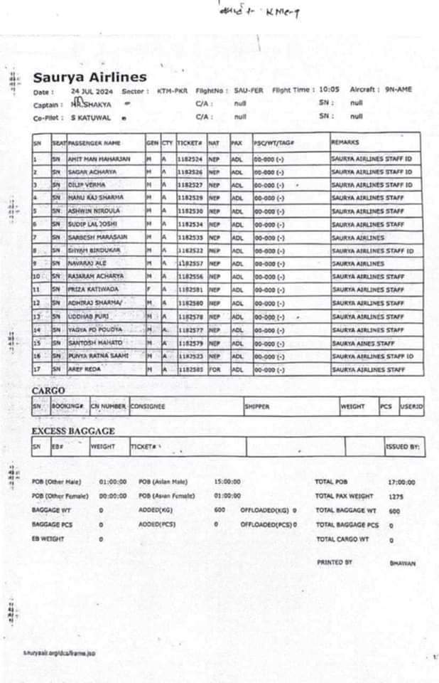 त्रिभुवन विमानस्थलबाट पोखराका लागि उडेको जहाज करिव दुई सय मिटर माथि पुगेपछि कोल्टिएर भुईँमा बजारिएको सामाजिक सञ्जालमा सार्वजनिक भएका भिडियोमा देखिएको थियो। दुर्घटनापछि जहाजमा आगो लागेको र धुवाँको मुस्लो देखिएको थियो। जहाज अवतरणका क्रममा ठूलो आवाज आएको प्रत्यक्षदर्शीहरूले बताएका छन्। उड्ने क्रममा धावनमार्गबाट जहाज चिप्लिएको भनिएपनि जहाज आकासमा पुगेपछि पुनः भुईँमा खसेको देखिएको छ।