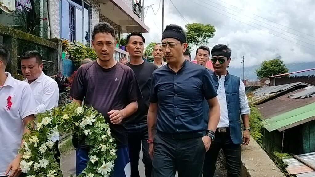 खरसाङ: गोरामुमो खरसाङ ब्राञ्च कमिटीद्वारा खरसाङको लङभ्युमा अवस्थित शहीद वेदीमा आयोजना गरिएको शहीद दिवस समारोहमा आज गोरामुमो अध्यक्ष मन घिसिङद्वारा शहीदहरुलाई सम्मान गर्दै श्रद्धाञ्जलि अर्पण गरेका छन्। शहीदहरूलाई श्रध्दाञ्जली अर्पण गर्नलाई गोरामुमो अध्यक्ष मन घिसिङ टाउकोमा कालो पट्टी बाँधेर आएका थिए। उनले टाउकोमा कालो पट्टी बाँधेर नै गोर्खाल्याण्ड आन्दोलनमा शहीद भएका शहीदहरूलाई श्रध्दाञ्जली अर्पण गरेका छन्। यसै क्रममा पत्रकारहरुलाई सम्बोधन गर्ने क्रममा गोरामुमो अध्यक्ष मन घिसिङले भने, ‘गोर्खा जातिले न्याय पाउनुपर्छ भने सबै एक हुनुपर्छ। यो मैले बारम्बार भन्दै आएको हो। गोर्खा एकताको निम्ति अब पार्टीको झण्डालाई पन्साएर सबैले कालो झण्डा लगाउन अपिल गर्दछु। पहाडमा धेरै पार्टी अनि झण्डाहरुको जन्म भयो सबै आ-आफ्नो तालमा कुदेका छन्। सबैले शहीद दिवस भव्य रुपमा मनाउने होडमा छन् तर शहीद कुनै राजनैतिक दलको पेवा होइन। शहीदहरूले जाति र माटोको उन्मुक्तिको निम्ति आफ्नो प्राणको आहुति दिएका हुन्। वहाँहरु गोर्खा शहीद हुन्। आज मैले कालो पट्टि र कालो झण्डा लगाउनु अर्थ गोर्खा एकताको प्रतिक हो।’