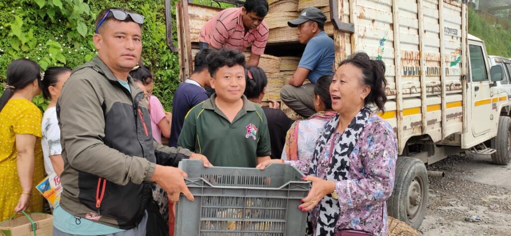 खरसाङ: खरसाङ खण्ड अन्तर्गत महानदी ग्राम पञ्चायत क्षेत्रमा आज कुखुराको चल्लाहरू वितरण गरिएको छ। खरसाङ खण्ड प्राणी सम्पदा विभागको कर्माध्यक्ष साजन दर्जीको पहलमा महानदी ग्राम पञ्चायतको पञ्चायत समिति सदस्य कुसाङ लामा र सरिता मुखियाको सहयोग र उपस्थितिमा महानदी ग्राम पञ्चायत अन्तर्गत पर्ने विभिन्न गाउँहरूका लगभग चार सय परिवारहरूलाई आज कुखुराको चल्लाहरू वितरण गरिएको छ। विशेष गरेर मानिसहरूलाई कुखुरा पालनबाट स्वनिर्भर बनाउन तथा जीविकोपार्जनको लागि यी कुखुराको चल्लाहरू खरसाङ खण्ड अन्तर्गत विभिन्न ग्राम पञ्चायतहरूमा वितरण गरिने कार्य सम्पन्न भईरहेको छ।महानदी ग्राम पञ्चायतको घुम्ती चियाबारीस्थित आदर्श श्रमिक कल्याण भवनमा प्राणी सम्पदा विभाग खरसाङ खण्डको कर्माध्यक्ष साजन दर्जी, पञ्चायत समिति सदस्य कुसाङ लामा र सरिता मुखिया, पञ्चायत सदस्यहरूको उपस्थितिमा मानिसहरूलाई कुखुराको चल्लाहरू वितरण गरिएको छ। यस कुखुराको चल्लाहरू वितरण कार्य विषयमा पत्रकारहरूसित कुराकानी गर्दै पञ्चायत समिति सदस्य कुसाङ लामाले आज महानदी ग्राम पञ्चायत अन्तर्गत पर्ने विभिन्न स्थानहरूका जम्मा चार सयजनालाई कुखुराको चल्लाहरू वितरण गरिएको जानकारी गराएका छन् । उनले यसको लागि खरसाङ खण्ड पञ्चायत समिति सभापति अनु छेत्री प्रधान र कर्माध्यक्ष साजन दर्जीलाई धन्यवाद दिएका छन्।