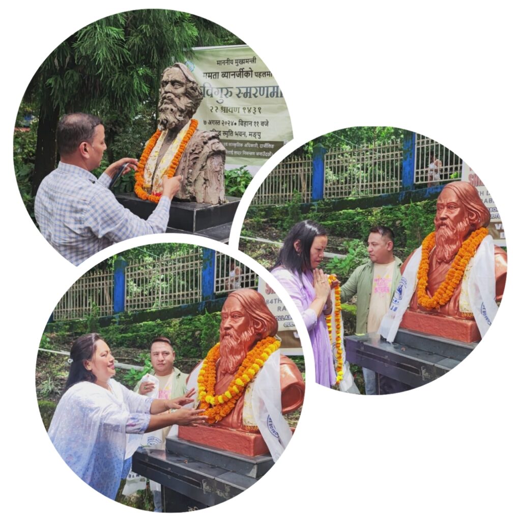 यसरी सूचना एवं सांस्कृतिक विभागीय अधिकारी खाङ डोमा भुटीया, रवीन्द्र श्रमिक कल्याण केन्द्र मङपूका अधिकारी सदुमा छेत्री अनि अन्य अतिथिगणले पनि गुरुदेवको प्रतिमामा श्रध्दासुमन अर्पण गर्दै माल्यार्पण एवं धुप प्रज्वलन गरे।