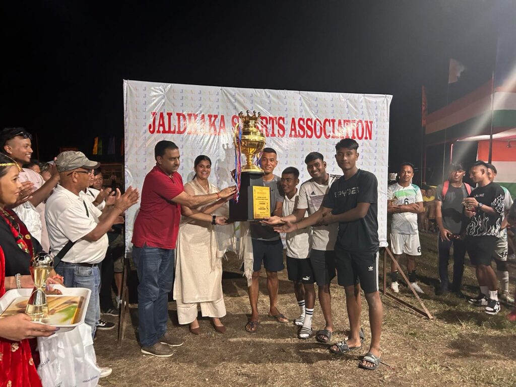जलढाका: जलढाका स्पोर्ट्स एसोसिएशनको तत्त्वावधानमा आयोजित ७८औं इण्डिपेण्डेन्स डे नक्आउट फूटबल टुर्नामेण्टमा नक्सल ग्रेफ च्याम्पियन भयो। झोलुंग खेल मैदानमा शुक्रवार खेलिएको फाइनल म्याचमा नक्सल ग्रेफले दलसिंगपाड़ा स्पोर्ट्स एकाडमी (डीएसए)-लाई पेनल्टी शूटआउटमा ५-४-ले पराजित गऱ्यो। यसअघि नियमित समयको खेलमा स्कोर १-१-को बराबरीमा रहेको थियो। यस नाइन ए साइड टुर्नामेण्टमा च्याम्पियन हुने टीमलाई आकर्षक ट्रफीको साथमा ३० हजार रुपियाँको नगद पुरस्कार प्रदान गरियो। यसरी नै रनरअप् हुने टीमलाई आकर्षक ट्रफीको साथमा २० हजार रुपियाँको नगद पुरस्कार प्रदान गरियो। फाइनल म्याचमा मुख्य अतिथिको रूपमा लाक्पा नामग्याल भूटिया (सभासद) उपस्थित थिए। च्याम्पियन टीमका गोलकीपर एजराले प्लेयर अव् द म्याच र बेस्ट गोलकीपरको पुरस्कार जिते।