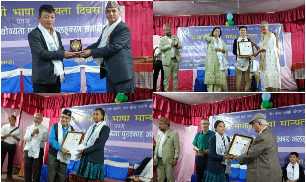 खरसाङ: भारतीय नेपाली गोर्खाहरूको सबैभन्दा पुरानो सामाजिक र साहित्यिक संस्था गोर्खा जनपुस्ताकालय खरसाङको आयोजनामा ३३औं भाषा मान्यता दिवस एम् सम्मान अनि शैक्षिक योग्यता पुरस्कार अलङ्करण समारोह सम्पन्न भएको छ। उक्त कार्यक्रमको अध्यक्षता पुस्तकालयको उप सभापति प्रकाश प्रधानले गरेका थिए भने प्रमुख अतिथिको रुपमा वरिष्ठ साहित्यकार मिलन बान्तावा उपस्थित थिए। त्यसरी नै विशिष्ट अतिथिको रूपमा सूचना अनि सांस्कृतिक विभाग भाषा अनि साहित्यका सह निर्देशक बिमल राई, वरिष्ठ पत्रकार केशव प्रधान, वरिष्ठ साहित्यकार पूर्ण गुरुङ निरुपम, जीबी बल, आकाशवाणी खरसाङको पूर्व निर्देशक बलराम राई, सभासद श्याम शेर्पा, खरसाङ नगरपालिकाको अध्यक्ष ब्रिगेन गुरूङ उपस्थित रहेका थिए। गोमा सुब्बाद्वारा सञ्चालित कार्यक्रममा स्वागत सम्भाषण पुस्ताकालयको मूल सचिव विनोद रसाइलीले राखेका थिए। यसै कार्यक्रममा गोर्खा जनपुस्ताकालय खरसाङको तर्फबाट यसपालीदेखि नेपाली भाषामा निरन्तर शिक्षा प्रदान गर्दै आएका शिक्षक शिक्षिकाहरूलाई सम्मान जनाउने प्रथा शुरु गरिएको छ। यस अन्तर्गत सन्त अल्फन्सेस विद्यालय खरसाङका शिक्षक राजेन खवास ‘प्रयासी’ लाई पहिलो समर्पित शिक्षक सम्मानद्वारा सम्मानित गरिएको छ। उनलाई पुस्तकालयको पक्षबाट खदार्पणसहित नेपाली जातीय टोपी पहिराएर शल ओढ़ाएर साथै सम्मान पत्रद्वारा सम्मानित गरिएको छ। यस क्रममा शिक्षक राजेन खवासको जीवनी पठन रचना राई अनाकरले गरेकी थिइन् भने सम्मान पत्र पी लक्की शेर्पाद्वारा पठन गरिएको थियो। कार्यक्रममा माध्यमिक, उच्च माध्यमिक, स्नातक तह साथै गणित, जीव विज्ञान अनि पोलिटेक्निक कलेज टना उच्च अंक ल्याएर उत्तीर्ण हुने विद्यार्थीहरूलाई विभिन्न व्यक्तिहरूद्वारा प्रायोजित शैक्षिक योग्यता पुरस्कारहरू प्रदान गरिएको छ। यस शैक्षिक योग्यता पुरस्कार समारोहलाई पुस्तकालयको उपाध्यक्ष प्रकाश प्रधानले सञ्चालन गरेका थिए। कार्यक्रममा मुख्य अतिथिको रूपमा उपस्थित साहित्यकार मिलन बान्तावाले नेपाली भाषा, साहित्य र भाषा संग्रामीहरू विषयमा वार्ता प्रस्तुत गरेका थिए। उनले नेपाली भाषाको मान्यता र वर्तमान समयमा भाषाको स्तर र प्रयोग विषयमा वक्तव्य राखेका थिए। मिलन बान्तावाले भाषाले मान्यता त पायो र उपलब्धि शून्य रहेको बताउँदै मान्यता पाएर पनि भाषाले पाउनु पर्ने सुविधा नपाउनु हाम्रै कमजोरी हो भनी बताएका छन्। उनले नेपाली भाषालाई व्यवहारिक रूपमा प्रयोग गर्नुपर्छ भन्दै यसको लागि सबैले तल्लो स्तरत्रदेखि काम गर्नुपर्छ अनि विशेष गरेर राजनैतिक पार्टीका प्रतिनिधिहरूले हाम्रो बुध्दीजिवीहरूसित मिलेर कार्य गर्नु आवश्यक छ भनी बताएका छन्। कार्यक