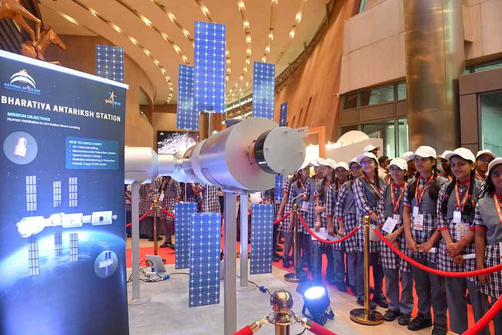 राष्ट्रपति द्रौपदी मुर्मुले अन्तरिक्ष अन्वेषणले मानवीय क्षमता अभिवृद्धि भएको र देशको कल्पनालाई पूरा गरेको तर अन्तरिक्ष अन्वेषण चुनौतीपूर्ण कार्य भएको बताइन्। उनले भनिन्, ‘अन्तरिक्ष अन्वेषणको क्रममा सामना गर्ने समस्याहरू समाधान गर्न गरिएको अनुसन्धानले विज्ञानको विकासलाई गति दिन्छ र मानव जीवनमा सुधार गर्दछ। अन्तरिक्ष क्षेत्रको विकासले स्वास्थ्य र औषधि, यातायात, सुरक्षा, ऊर्जा, वातावरण, सूचना प्रविधिलगायत धेरै क्षेत्रहरूलाई फाइदा पुर्याएको छ।‘
