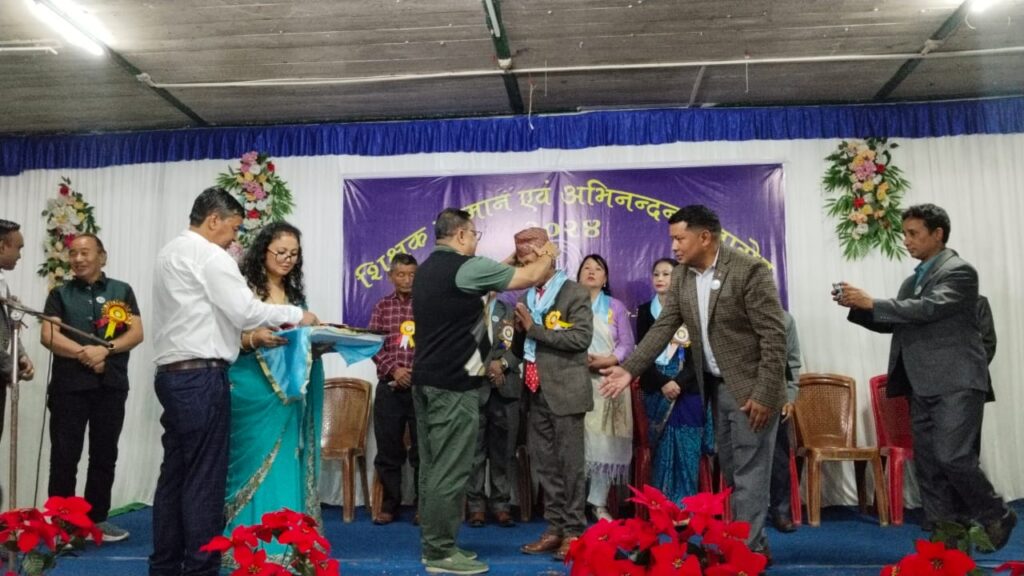 सोनादा: हिल तराई प्राथमिक शिक्षक संगठन, सोनादा क्षेत्र पे व्येण्ड शिक्षक संगठन र पारा शिक्षक संगठन सोनादा क्षेत्रको संयुक्त आयोजनामा सोनादामा शिक्षक सम्मान एवं अभिनन्दन समारोह सम्पन्न भएको छ। सोनादाको न्यु लाइट क्लब भवनमा सम्पन्न उक्त कार्यक्रममा सभाध्यक्षको रूपमा पूर्व वरिष्ठ शिक्षक एंव समाजसेवी देवकुमार प्रधान अनि प्रमुख अतिथिको रुपमा गोर्खाल्याण्ड क्षेत्रीय प्रशासनको प्रमुख कार्यपाल अनित थापा उपस्थित रहेका थिए। त्यसरी नै प्रमुख अतिथिको रुपमा जीटीएको डेपुटी चेयरम्यान राजेस चौहान, जीटीएको मुख्य सचिव आईएएस बिजय भारती, कार्यकारी सभासद अनोश थापा, सभासदहरू नुरी शेर्पा, उदय देवान, सन्दीप छेत्री लगायत अन्यहरू उपस्थित रहेका थिए। सुरेन छेत्री र चन्दन लकान्द्रीले सञ्चालन गरेको कार्यक्रममा स्वागत सम्भाषण किरण बरदेवाले राखेका थिए। यसै कार्यक्रममा अवकाशप्राप्त प्राथमिक शिक्षक अनि अवकाशप्राप्त पारा शिक्षकलाई सम्बर्ध्दना जनाइएको छ भने निधन भएका दुईजना शिक्षकहरूलाई पनि मरोणापान्त सम्मान जनाइएको छ।