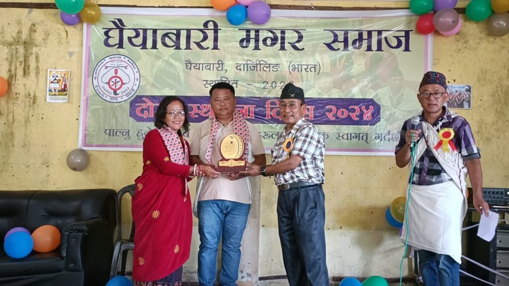 खरसाङ: घैयाबारी मगर समाजको दोस्रो स्थापना दिवस साथै सम्बर्ध्दना कार्यक्रम सम्पन्न भएको छ। सन् २०२२ मा स्थापना भएको घैयाबारी मगर समाजको आयोजनामा घैयाबारीको लोवर गैरी गाउँस्थित सार्वजनिक भवनमा मगर समाजको सभापति भुषण थापाको अध्यक्षता र घैयाबारी ग्राम पञ्चायत तीनको पञ्चायत प्रधान सुष्मा वाईबाको प्रमुख आतिथ्यमा सम्पन्न कार्यक्रममा विशिष्ट अतिथिको रुपमा घैयाबारी ग्राम पञ्चायत तीनको उप प्रधान केवल राई उपस्थित रहेका थिए। प्रणाम थापाले सञ्चालन गरेको उक्त कार्यक्रममा स्वागत सम्भाषण घैयाबारी मगर समाजको सल्लाहकार जयराज थापाले राखेका थिए। कार्यक्रममा नानीहरू क्रमैले समृध्दि थापा, निमिशा थापा लगायत अन्यहरूले नृत्य प्रस्तुत गरेका थिए। कार्यक्रमा हालमा पोखरामा रहेकी घैयाबारीकी गायिका शीत्तल थापाले गीतहरू प्रस्तुत गरेका थिए। यसै कार्यक्रममा घैयाबारी मगर समाजका नानीहरू जसले विभिन्न क्षेत्रहरूमा गरिरहेको उन्नति र प्रगतिको लागि सम्बर्ध्दना जनाइएको छ। यस क्रममा माध्यमिक परीक्षामा उत्तीर्ण अभियान थापा, फुटबल खेलाड़ी राहुल थापा, अधिवक्ता उत्तीर्ण मञ्जिता थापा र डेन्टिस डा प्रकृति थापालाई घैयाबारी मगर समाजको तर्फबाट खदार्पणसहित स्मृति चिन्ह प्रदान गरेर सम्बर्ध्दना जनाइएको छ। घैयाबारी मगर समाजको दोस्रो स्थापना दिवस र सम्बर्ध्दना कार्यक्रमको शुरुवात मित्रसेन थापाको तस्वीरमा खदार्पणसहित धुप दीप प्रज्वलन गरेर थालिएको थियो।