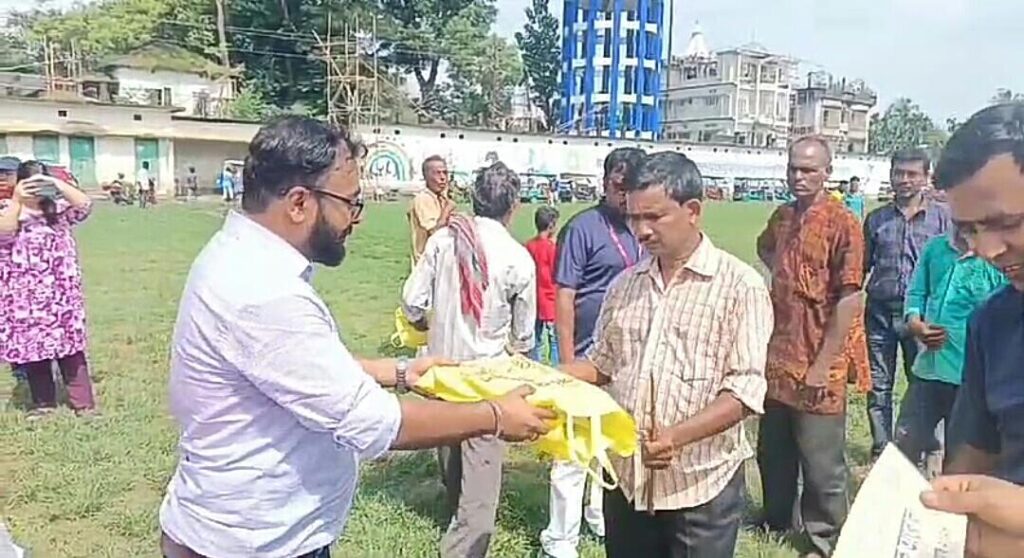 जलपाईगढी: आरजी कर मामिलामा न्यायको माग गर्दै गैरसरकारी संस्था अबोल तबोलले अनौठो विरोध प्रदर्शन गरेको छ। एनजीओ अबोल तबोलले आरजी कर पीडितको न्यायको माग गर्दै अनौठो तरिकाले विरोध प्रदर्शन गरेको छ। संगठनले आज जुलुस निकाल्यो। यससँगै आज महालयाको अवसरमा १५० ढाकियाहरू पीडितलाई न्यायको माग गर्दै ढाक बजाए। उनीहरु सबैलाई संस्थाले नयाँ लुगा प्रदान गरे। यसका साथै संस्थाले गरिब वर्गका जनतालाई नयाँ कपडा समेत प्रदान गरेको छ। आरजी कर पीडितलाई न्यायको माग गर्दै संगठनले विभिन्न कार्यक्रम आयोजना गरेको छ।