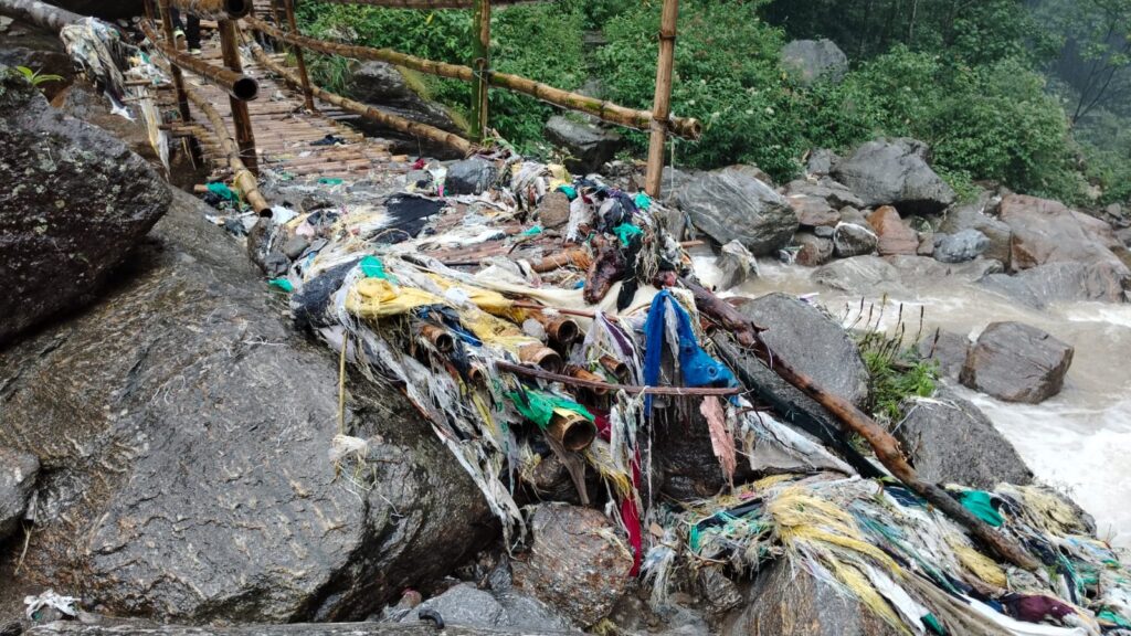 सोनादा: दार्जीलिङ पहाडको प्रसिद्ध पर्यटकीय स्थल इन्द्रेणी फल्स बाँसको पुलको आधा भाग बगाएको छ। लगातार परेको पानीले इन्द्रेणी फल्स जाने बाटोमा रहेको खोलामा निर्मित बाँसको पुललाई क्षति गर्नुको साथै आधा भाग नै बगाएको छ। यो पुल बगाएपछि इन्द्रेणी फल्स पुग्न बाटो चुडिएको छ। उक्त बाँसको पुल केही महिना अघि इन्द्रेणी फल्स संरक्षण समितिद्वारा निर्माण गरिएको थियो।
