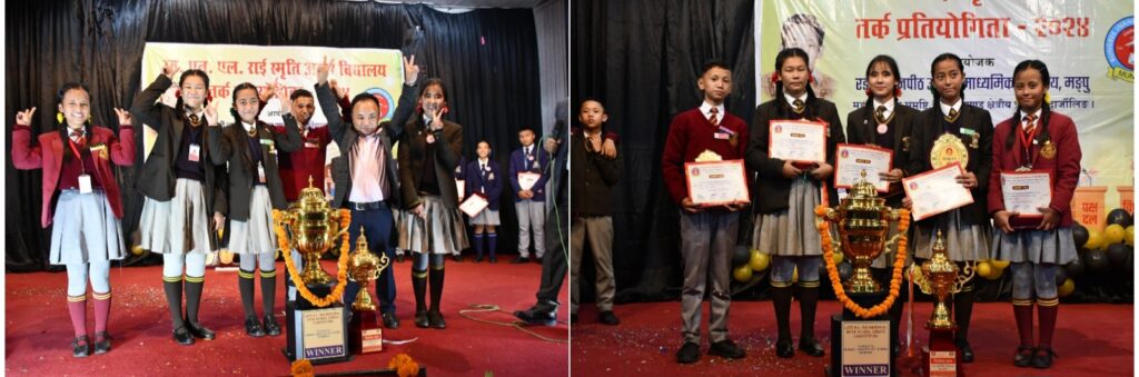 मङ्पु : स्व एनएल राई स्मृति अन्तर विद्यालय तर्क प्रतियोगिताको फाईनल सम्पन्न भएको छ। मङ्पू रङ्बी ज्ञानपीठ विद्यालयको आयोजनामा समष्टि स्तरीय तर्क प्रतियोगिताको फाईनल स्थानीय रबिन्द्र भवनमा ज्ञानपीठ विद्यालयका प्राचार्य दिलिप गुरुङको अध्यक्षता सम्पन्न भयो।आजको तर्क सभा विकासले बिनास ल्याउँछ कि ल्याउँदैन” भन्ने विषयमा रहेको थियो। यसमा मङ्पू सन्त जोसेफ विद्यालय अनि रञ्जुभेल्ली निम्नोच्च माध्यमिक विद्यालयका नानीहरुमाझ सप्पन्न भयो।सह शिक्षक कन्चन राई, अदीप राई, मिलन राई अनि दुष्यान्त रामुदामुले सञ्चालन गरेको समारोहमा रञ्जुभेल्ली विद्यालयका नानीहरुले नृत्य प्रस्तुत गरे भने विद्यालयका सह शिशक सुनील राईले गीत प्रस्तुत गरेका थिए। यसरी समारोहमा आजको तर्क सभाबारे साहित्यकार सुरेन्द्र थीङ अनि सभासद रतन थापा साथै जीटीएको सूचना एवं सांस्कृतिक विभागको कार्यकारी सभासद अनोश थापाले दुई शब्द राखेका थिए। कार्यक्रमको निर्णायकगणमा सुरेन्द्र थीङ, एके गुरुङ, केबी गिरी, चन्द्रकला राई अनि शुक्र राई रहेका थिए।