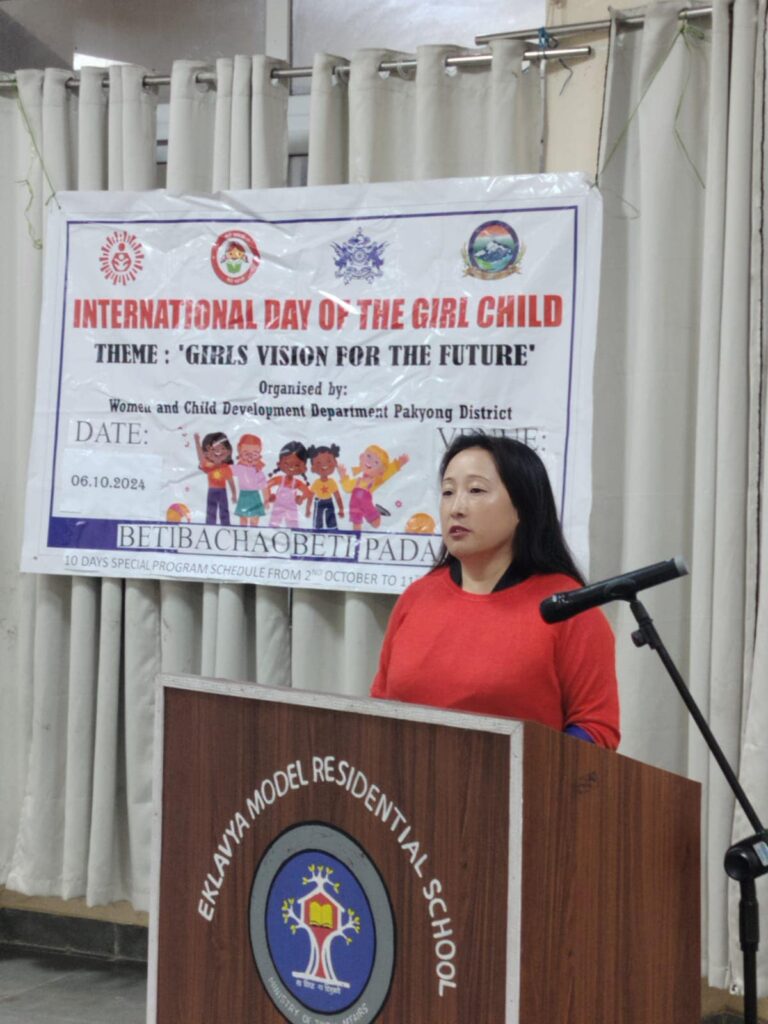 पाक्योङ: अन्तर्राष्ट्रिय बालिका दिवस मनाउनका साथसाथै ‘छोरी बचाऊ छोरी पढाऊ’ अभियानअन्तर्गत आज एकलव्य मोडेल रेसिडेन्सियल स्कूल, थेकाबोङ पराखामा सचेतना कार्यक्रम आयोजना गरियो। कार्यक्रमको शुरुवात उपनिर्देशक/समाज कल्याण अधिकारी श्रीमती डिकित लेप्चाले स्वागत वक्तव्य साथै परिचय दिइन्। कार्यक्रमलाई सम्बोधन गर्दै उनले बालिकाहरुको सशक्तिकरणको महत्व, उनीहरुको मौलिक अधिकार, सुरक्षा र लैङ्गिक भेदभावका चुनौतीहरु बारे जोड दिइन्। उनले ‘छोरी बचाऊ छोरी पढाऊ’ अभियानबारे जनचेतना जगाउने वाचा गरिन्।