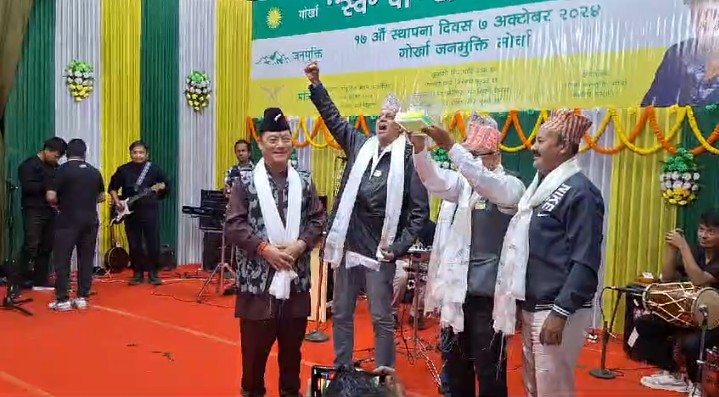 दार्जीलिङ: गोर्खा जनमुक्ति मोर्चाको १७औं स्थापना दिवस समारोह दार्जिलिङमा सम्पन्न भएको छ। विभिन्न रङ्गारंग सांस्कृिक कार्यक्रमको साथ गोर्खा जनमुक्ति मोर्चाद्वारा १७औं स्थापना दिवस पालन गरेको छ। दार्जिलिङ टके गोदुनिस भवनमा भएको उक्त समारोहमा गोर्खा जनमुक्ति मोर्चाको केन्द्रीय अध्यक्ष विमल गुरुङ लगायत महासचिव रोशन गिरी, आरपी वाइबा, सुरज सुब्बा, नोमन राई, आशा गुरूङ लगायत केन्द्रीय नेतृत्वहरूको साथमा दलीय कार्यकर्ता अनि समर्थकहरु उपस्थित रहेका थिए। गोजमुमोको १७औं स्थापना दिवस समारोह कार्यक्रमपछि पत्रकारहरूसित कुराकानी गर्दै गोजमुमो अध्यक्ष बिमल गुरुङले आउँदो एक वर्षभित्र पहाड, तराई-डुवर्सवासीको लागि खुशीको खबर आउने सङ्केत व्यक्त गरेका छन्। कुरा खुलस्त गर्न नचाहे तापनि केही नयाँ कुरा हुन सक्ने बताएका छन्। उनले पछिल्लो दिल्ली भ्रमण अनि गृहमन्त्री अमित शाहासित सम्पन्न बैठकबारे पहाडमा चाडबाडपछि अल पार्टी मिटिङ गरिने गुरूङको भनाइ छ।