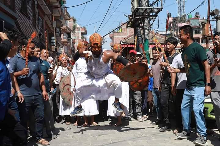 मध्यपुर (थिमी): हरेक वर्ष मध्यपुर थिमि लायकू दरबारबाट पापांकुशा एकादशीका दिन प्रदर्शन हुने भुइफसि पालेको जात्रा (कुभिण्डो काट्ने जात्रा) सँगै बालकुमारी र नारायणीको मूर्ति सहित नायो पमा । यस जात्रालाई पायो जात्रा पनि भन्ने गरिन्छ: